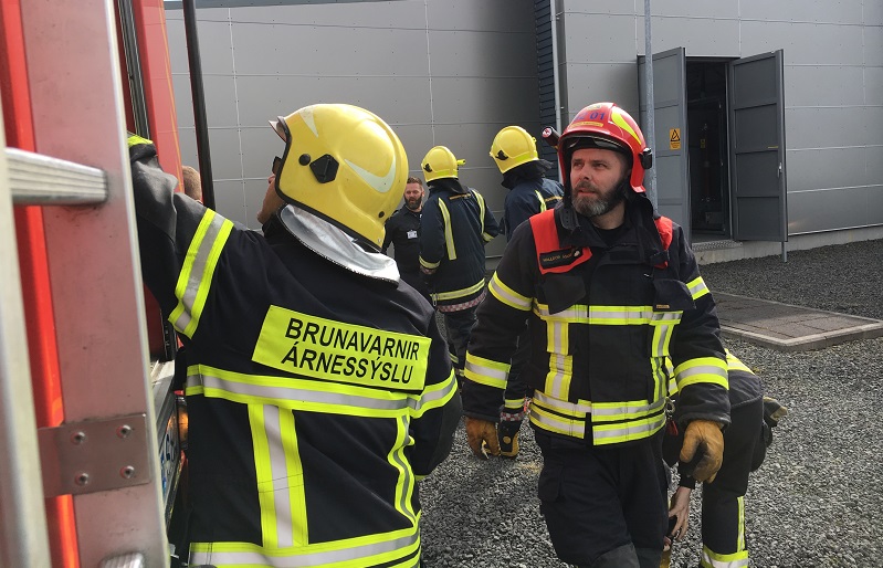 Að sögn Péturs Péturssonar, slökkviliðsstjóra, var enginn eldur í húsinu. „Það hefur brunnið yfir aflrofi í einum af háspennuskápunum þarna inni. Við leitum af okkur allan grun með hitamyndavélum sem gagnast okkur vel í verkefnum sem þessum. Það þurfti ekkert að reykræsta, það gustaði vel þarna í gegn um leið og hurðir voru opnaðar,“ sagði Pétur í samtali við sunnlenska.is.