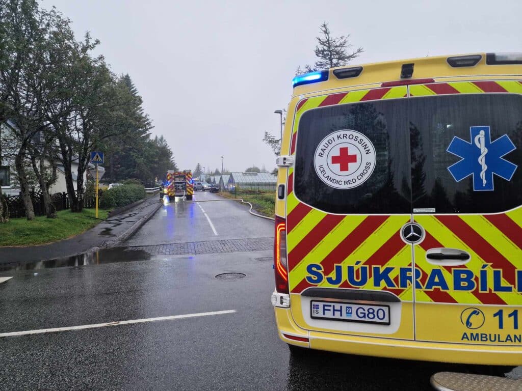 Slökkviliðsmenn frá Hveragerði unnu að slökkvistarfi ásamt einni vakt frá Selfossi, með dælubíl og stigabíl, auk þess sem lögregla og sjúkraflutningamenn voru kallaðir á vettvang.