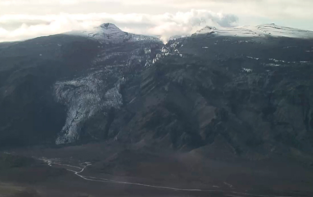 Snjólínan á Eyjafjallajökli var þó tiltölulega hátt í morgun, eða í yfir 1.200 metra hæð.