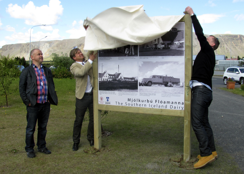 Eyþór Arnalds, formaður bæjarráðs Árborgar, og Þorsteinn Tryggvi Másson, héraðsskjalavörður, afhjúpuðu skiltin.