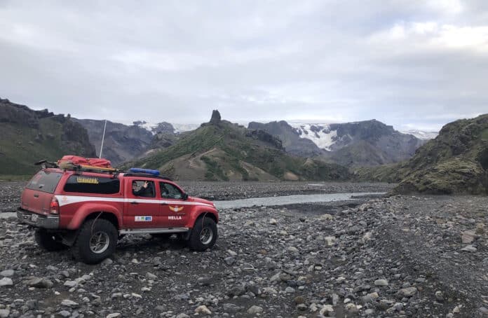 Göngumaðurinn hafði verið á ferðinni á hálendinu í nokkurn tíma. Ferðamenn í Þórsmörk tilkynntu um manninn en slæm veðurspá er í gildi fyrir svæðið á morgun og því leist þeim ekki á að hann væri þar einn á ferð.