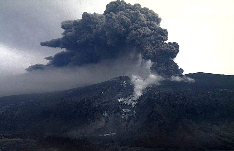 Gosvirknin virtist nokkuð stöðug síðdegis en þá jókst mökkurinn lítillega. Áfram er búist við sveiflum í gosvirkninni með tilheyrandi gjóskufalli.