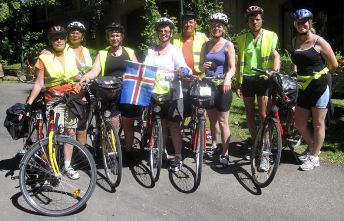 MYNDATEXTI: Sunnlensku hjólreiðamennirnir Sigríður Kr. Jóhannsdóttir, Erla Guðmundsdóttir, Jóhanna Ö. Guðjónsdóttir, Aðalheiður, Guðmundsdóttir, Samúel Smári Hreggviðsson, Margrét Ófeigsdóttir, Magnús Jóhannsson og Sigurveig Guðmundsdóttir.