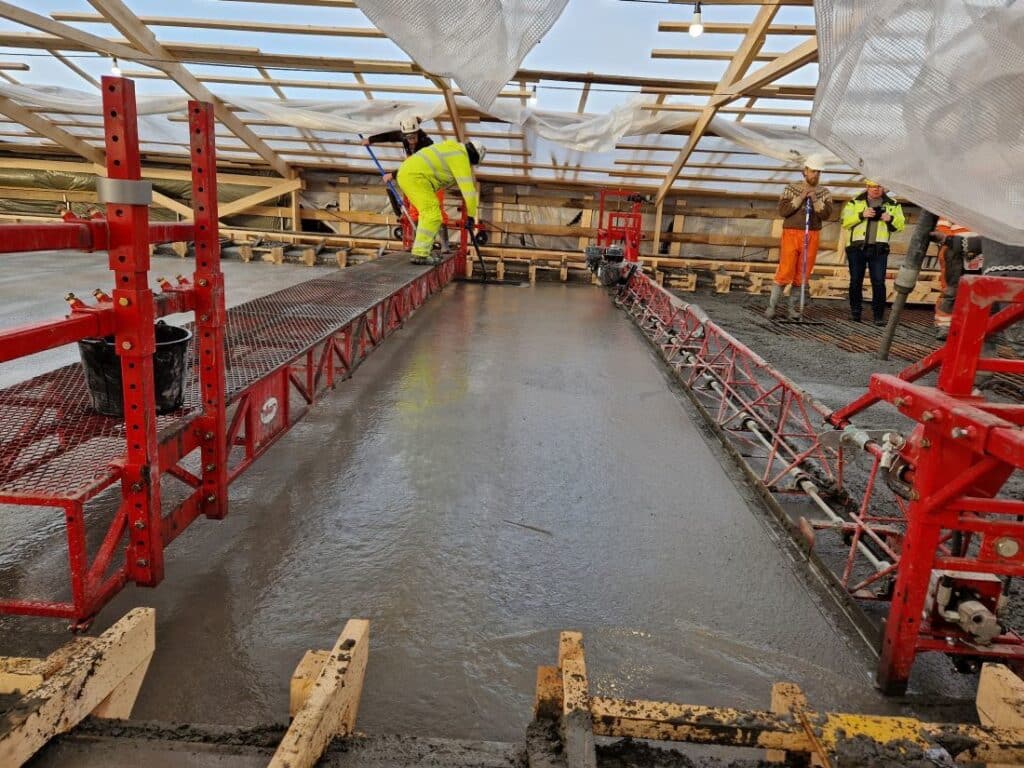 Brúargólf nýju brúarinnar yfir Stóru-Laxá var steypt í síðustu viku. Verkið gekk vel í stilltu veðri en steypuvinnan stóð yfir samfellt í 30 klukkustundir.