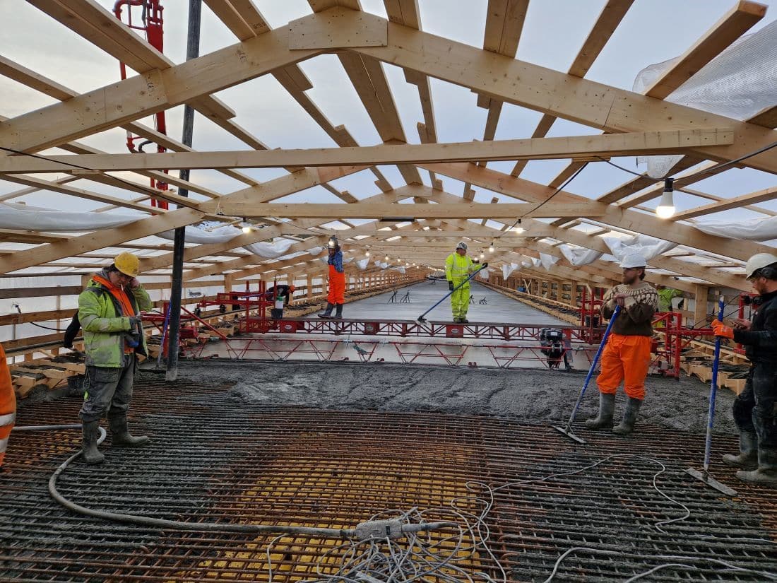 Brúargólf nýju brúarinnar yfir Stóru-Laxá var steypt í síðustu viku. Verkið gekk vel í stilltu veðri en steypuvinnan stóð yfir samfellt í 30 klukkustundir.