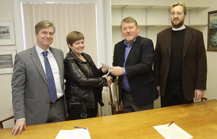 Auk hans skrifuðu sr. Sveinn Valgeirsson, Ásta Stefánsdóttir, framkvæmdastjóri Árborgar og Eyþór Arnalds, formaður bæjarráðs, undir kaupsamninginn. Eyþór sagði við þetta tækifæri að það væri ánægjulegt að húsið væri komið í hendur kirkjunnar og að nú yrði lífi blásið í það.