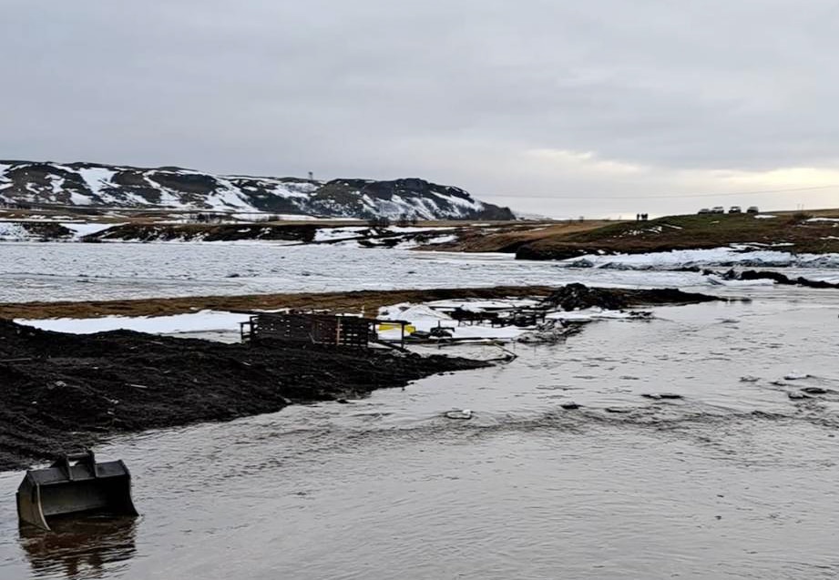 Gunnlaugur Emilsson á Flúðum var staddur við brúnna þegar flóðið náði þangað. „Þetta virðist hafa verið einn toppur og er ekkert að aukast frekar. Klakinn situr eftir að mestu leiti á eyrunum fyrir ofan brúnna og vatnið rennur bæði undir brúnna og í nýja farveginum framhjá brúnni. Ef þeir hefðu ekki breytt farveginum þá hefði allt klakadraslið komið á undirstöður nýju brúarinnar,“ sagði Gunnlaugur í samtali við sunnlenska.is.