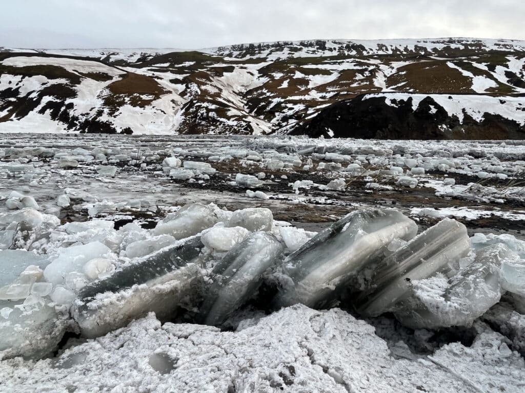 „Þetta er orðið rólegt hjá okkur núna. Það voru miklar drunur og svo kom hún í einni gusu niður dalinn og hélt sína leið niðureftir. Ég hef ekki séð þetta gerast með berum augum áður og það var merkilegt að fylgjast með þessu. Áin fór upp á allar eyrar og aðeins upp á tún hjá okkur en þetta hefur svosem gerst áður. Þetta var ansi skrautlegt,“ sagði Ragnheiður Hallgrímsdóttir á Sólheimum í samtali við sunnlenska.is.