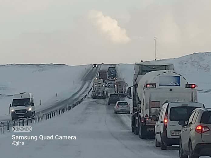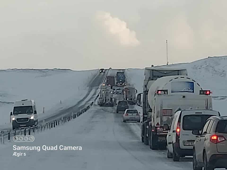 Umferð um Þrengslaveg og Sandskeið er opin til vesturs en Hellisheiðin er ennþá lokuð í báðar áttir og unnið er að snjómokstri.