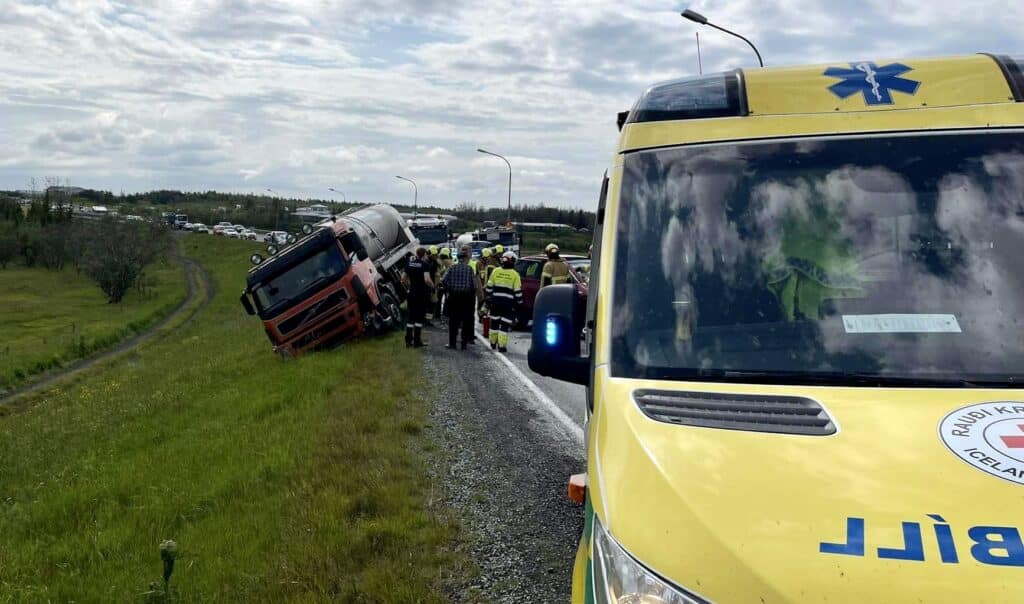Ekki náðist í lögregluna á Suðurlandi við vinnslu fréttarinnar en samkvæmt heimildarmönnum sunnlenska.is á vettvangi verður vegurinn ekki opnaður aftur fyrr en vörubílnum hefur verið komið upp á veg.