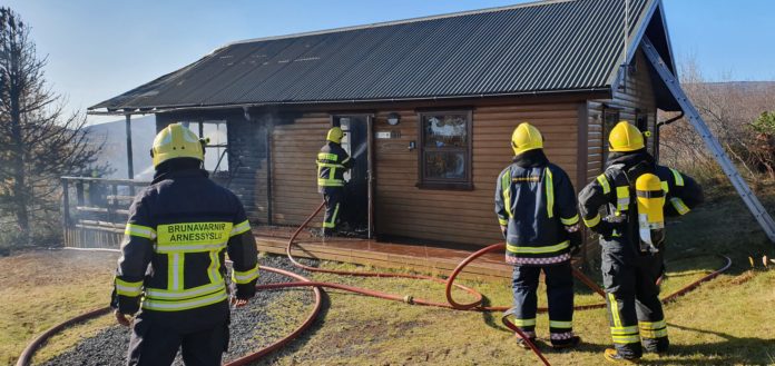 UPPFÆRT KL. 15:28: Sumarhúsið var í eigu Orlofssjóðs Bandalags háskólamanna og var það mannlaust þegar eldurinn kom upp. Í tilkynningu frá BHM segir að ljóst sé að tjón Orlofssjóðs sé verulegt og verður unnið að því að meta það á næstu dögum. Um er að ræða hús nr. 28. Sjóðfélögum sem kunna að hafa bókað þetta hús til dvalar á næstunni er vinsamlegast bent á að hafa samband við þjónustuver BHM.