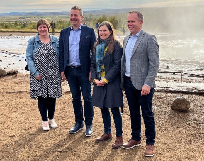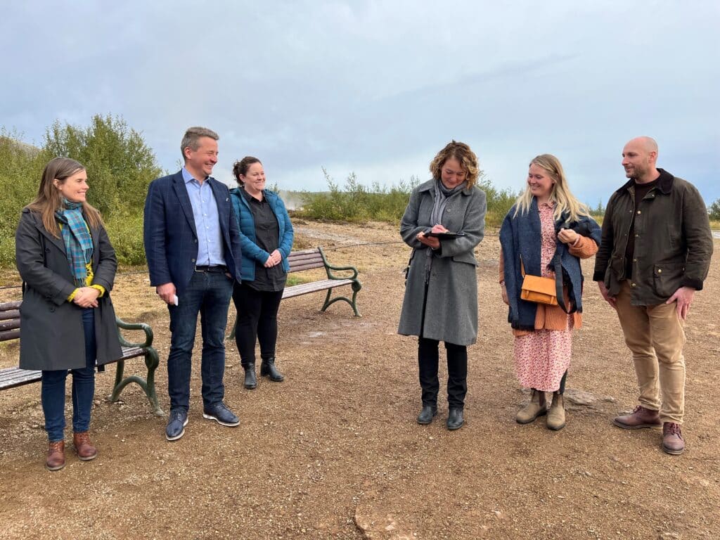 Katrín Jakobsdóttir forsætisráðherra og Guðlaugur Þór Þórðarson, umhverfis-, orku- og loftslagsráðherra tóku þátt í athöfn við Geysi í morgun, þar sem umhverfis-, orku- og loftslagráðherra staðfesti stjórnunar- og verndaráætlun Geysissvæðisins.