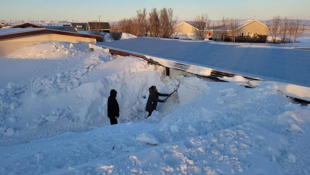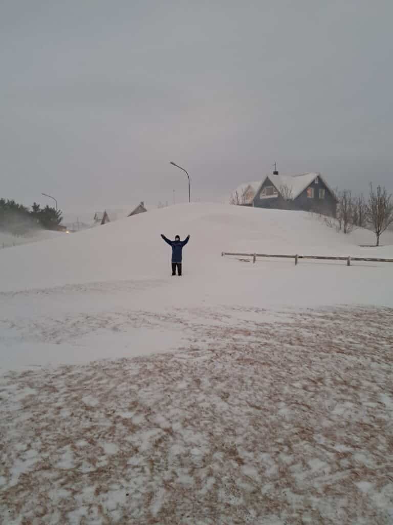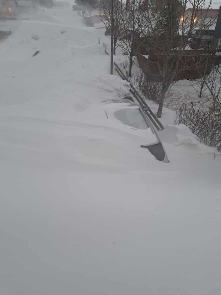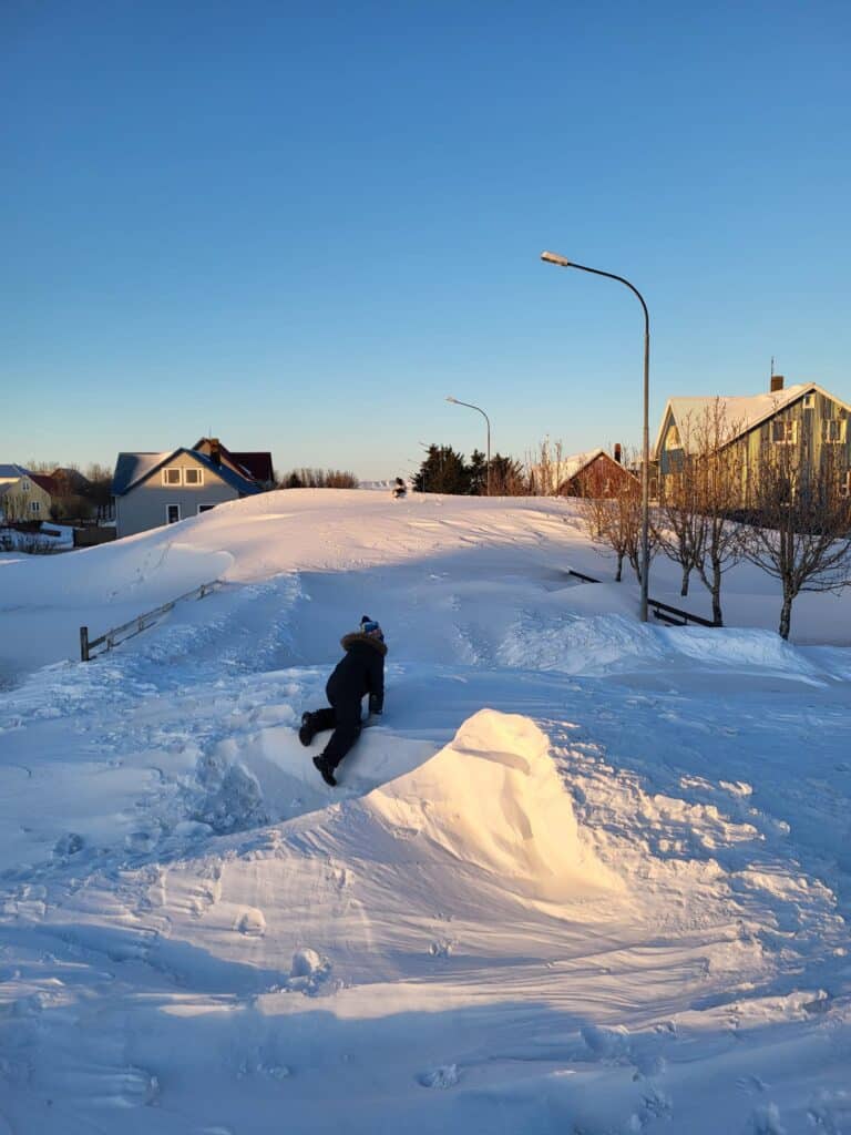 „Það er mikið af góðu fólki hérna í kringum okkur, fyrst komu fimm lögregluþjónar og svo bættust við vinir og nágrannar. Það var meira að segja lokað einni deild á leikskólanum og börnin færð á aðra deild og starfsfólkið kom hérna yfir til okkar og hjálpaði til. Þetta var mikill léttir og við erum glöð að sjá loksins upp í himininn,“ bætti Emma við og að sjálfsögðu bauð hún fólkinu upp á kaffi og vöfflur með rjóma að mokstri loknum.