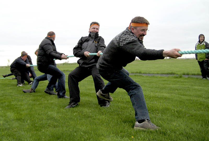 Kvöldið fyrir kosningarnar í Flóahreppi áttust frambjóðendur T og R-lista við í reiptogi. T-listinn sigraði þá keppni örugglega.