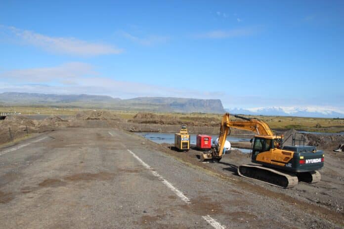 „Þrátt fyrir þessar tafir ætlar verktakinn sér að koma upp brúnni fyrir árslok og telur sig þurfa 10 vikur til að klára. Þá er vegagerðin eftir og hún fer dálítið eftir tíðarfari í haust. Ekki er ljóst hvort náist að klæða veginn til bráðabirgða eða hvort malarslitlag verði á veginum í vetur og klætt næsta vor,“ sagði Sólveig í samtali við sunnlenska.is.