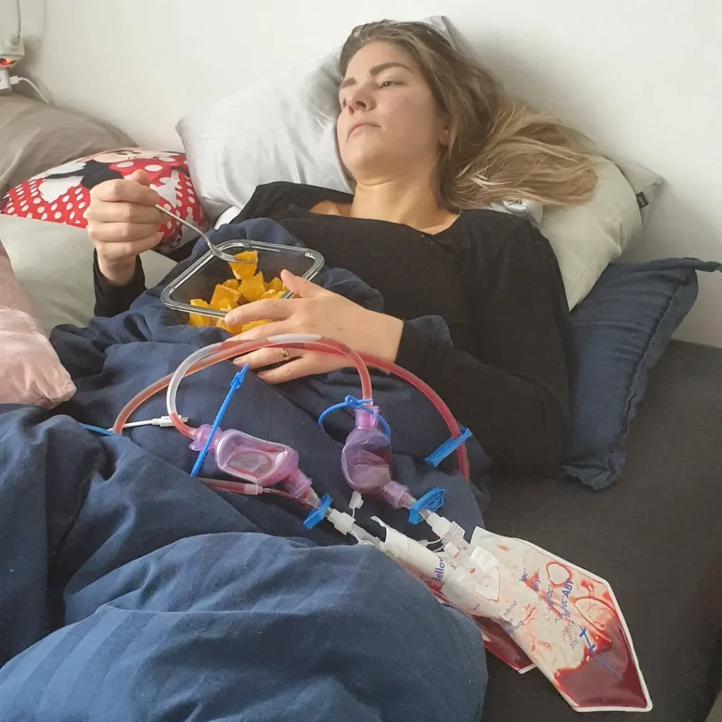 „Dóttir mín er ósk minna drauma. Á meðan við vorum í umsóknarferlinu og að bíða þá héldu veikindin mín áfram og lífernið mitt var ekki gott heldur, þannig ég var komin í vítahring. Í nóvember 2019 fæ ég síðan mjög alvarlegt gigtarkast. Þegar ég sprauta mig með ónæmisbælandi þá er eins og sprautan hafi öfug áhrif á mig. Ég fæ mikinn verk í nýrum, hnjáliðurinn verður tvöfaldur og kjálkinn fer úr lið.“