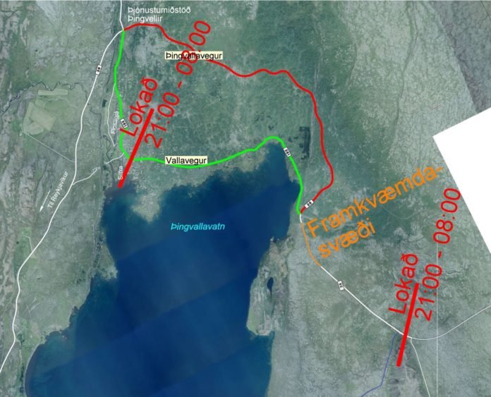 Vakin er athygli á að á meðan á þessu stendur er ekki er hægt að komast Þingvallahringinn að næturlagi.