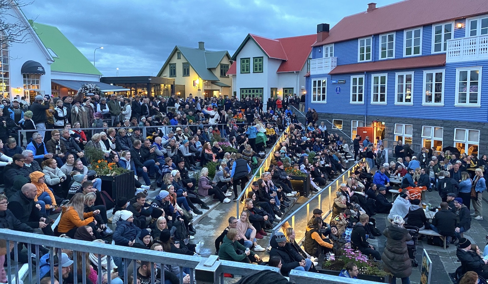 Brúartorg var smekkfullt í allt kvöld og sannkölluð þjóðhátíðarstemning í tröppunum.