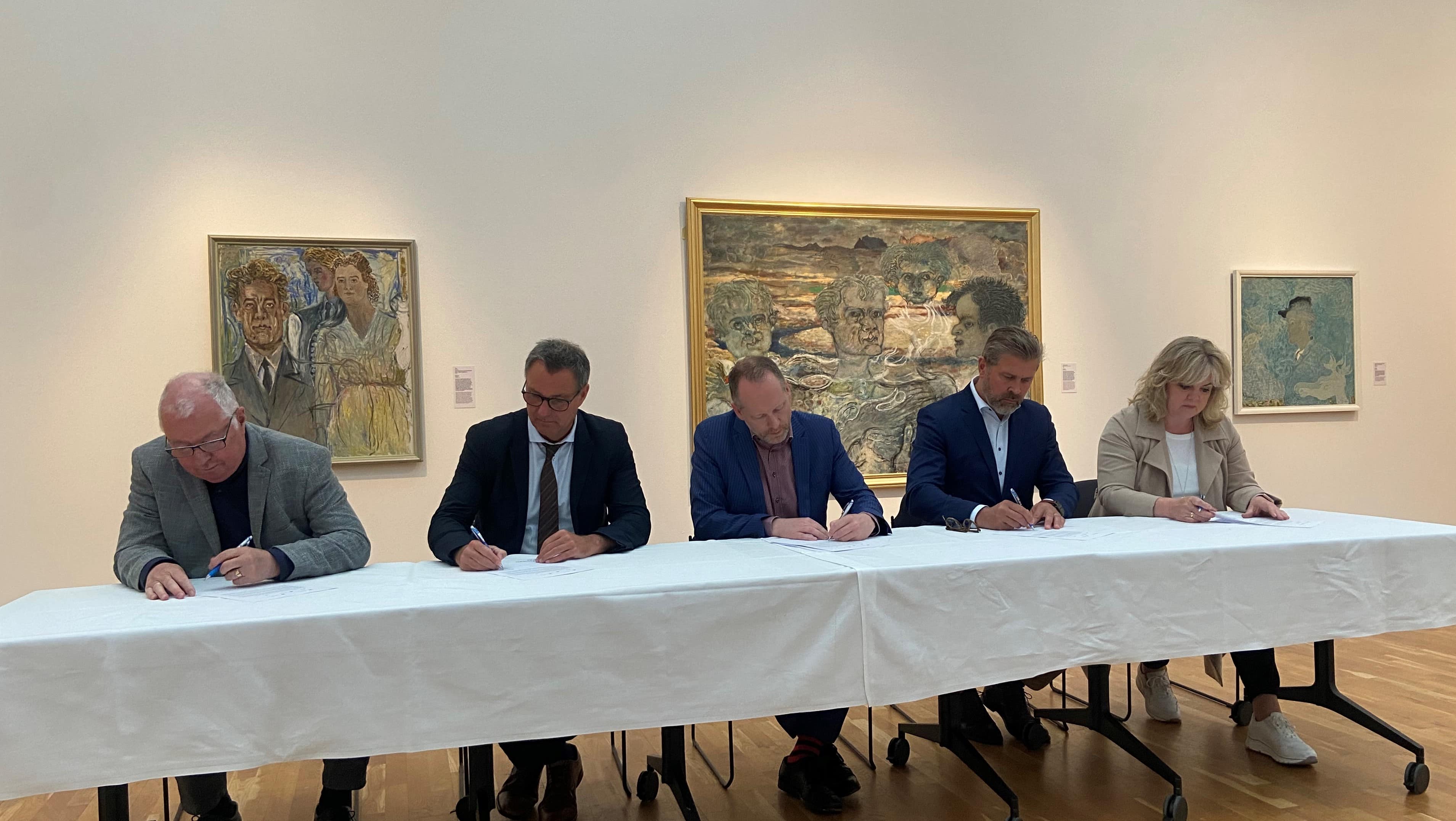 Guðmundur Ingi Guðbrandsson, félags- og vinnumarkaðsráðherra, Willum Þór Þórsson, heilbrigðisráðherra, Bjarni Benediktsson, fjármála- og efnahagsráðherra, Aldís Hafsteinsdóttir, formaður Sambands íslenskra sveitarfélaga og Helgi Pétursson, formaður Landsambands eldri borgara, undirrituðu í dag viljayfirlýsingu um heildarendurskoðun á þjónustu við eldra fólk.