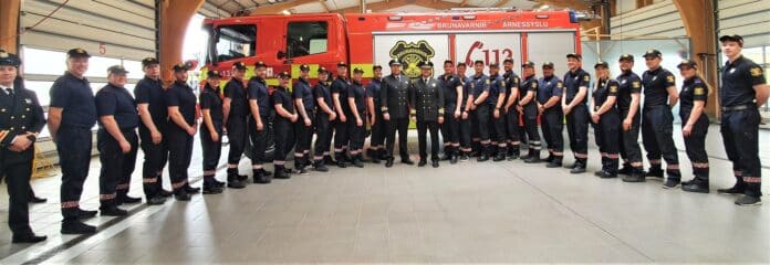 Það var hátíðlegt í Björgunarmiðstöðinni á Selfossi að morgni þjóðhátíðardagsins þegar þrjátíu nýir slökkviliðsmenn útskrifuðust úr slökkviliðsnámi og fara nú á útkallsskrá sem hlutastarfandi slökkviliðsmenn hjá Brunavörnum Árnessýslu.