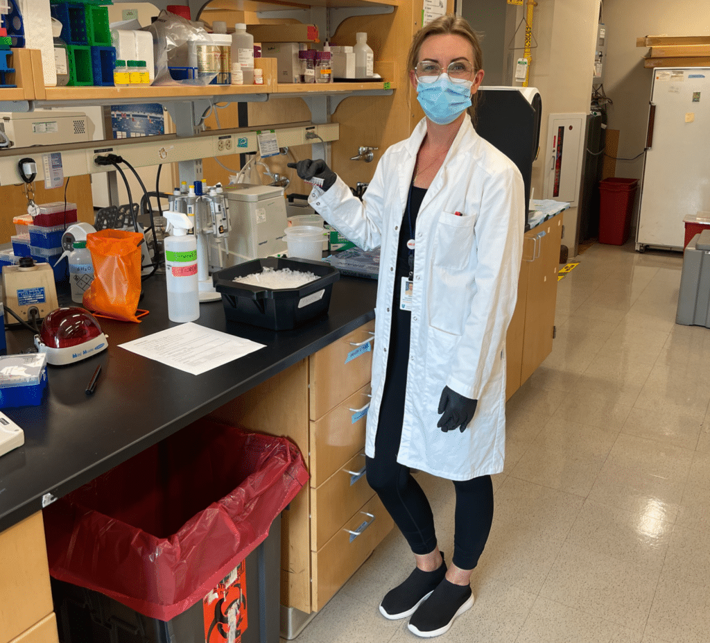 „Ég get ekki útskrifast án þess að vera með niðurstöður úr rannsókn. Þannig að þá nýtti ég í rauninni broddmjólkina og rannsóknirnar sem ég var hvort sem er með í bígerð. Verknámið mitt úti í Boston snerist um rannsóknir á broddmjólk og áhrifum hennar á þarmaflóru, gegndræpi þarma og svokallað gut-brain axis, hvernig broddmjólkin hefur áhrif á þarmaflóruna, hvort það hefði í raun einhver áhrif á taugaboðefni, hormón, hegðun, líðan og þess háttar.“