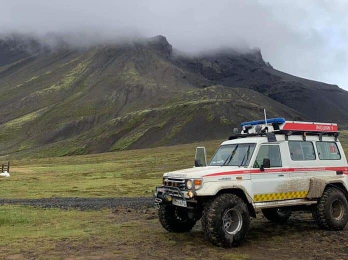 Voru björgunarmenn ásamt sjúkraflutningsmönnum komnir langleiðina á vettvang til að aðstoða þegar þyrla Landhelgisgæslunnar mætti á staðinn og flutti manninn til Reykjavíkur.