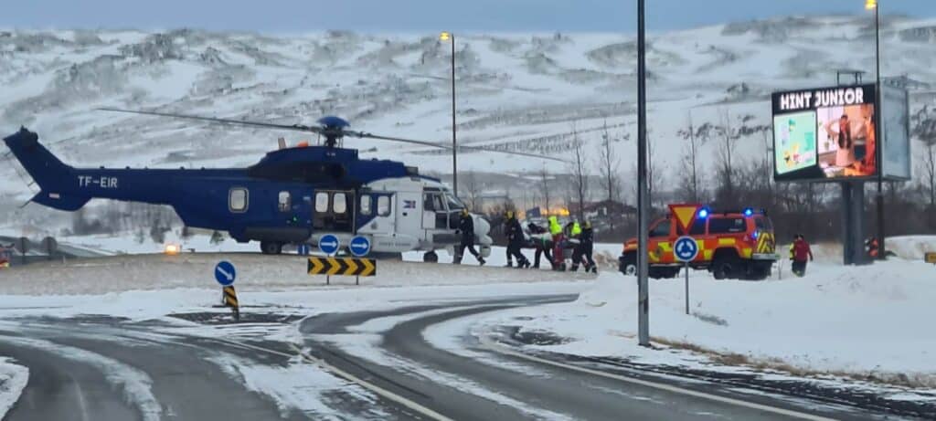 TF-EIR lenti á hringtorginu við Hveragerði þar sem sjúklingurinn var tekinn um borð og hann síðan fluttur á Landspítalann. Hjálparsveit skáta í Hveragerði aðstoðaði við flutninginn innanbæjar í Hveragerði.