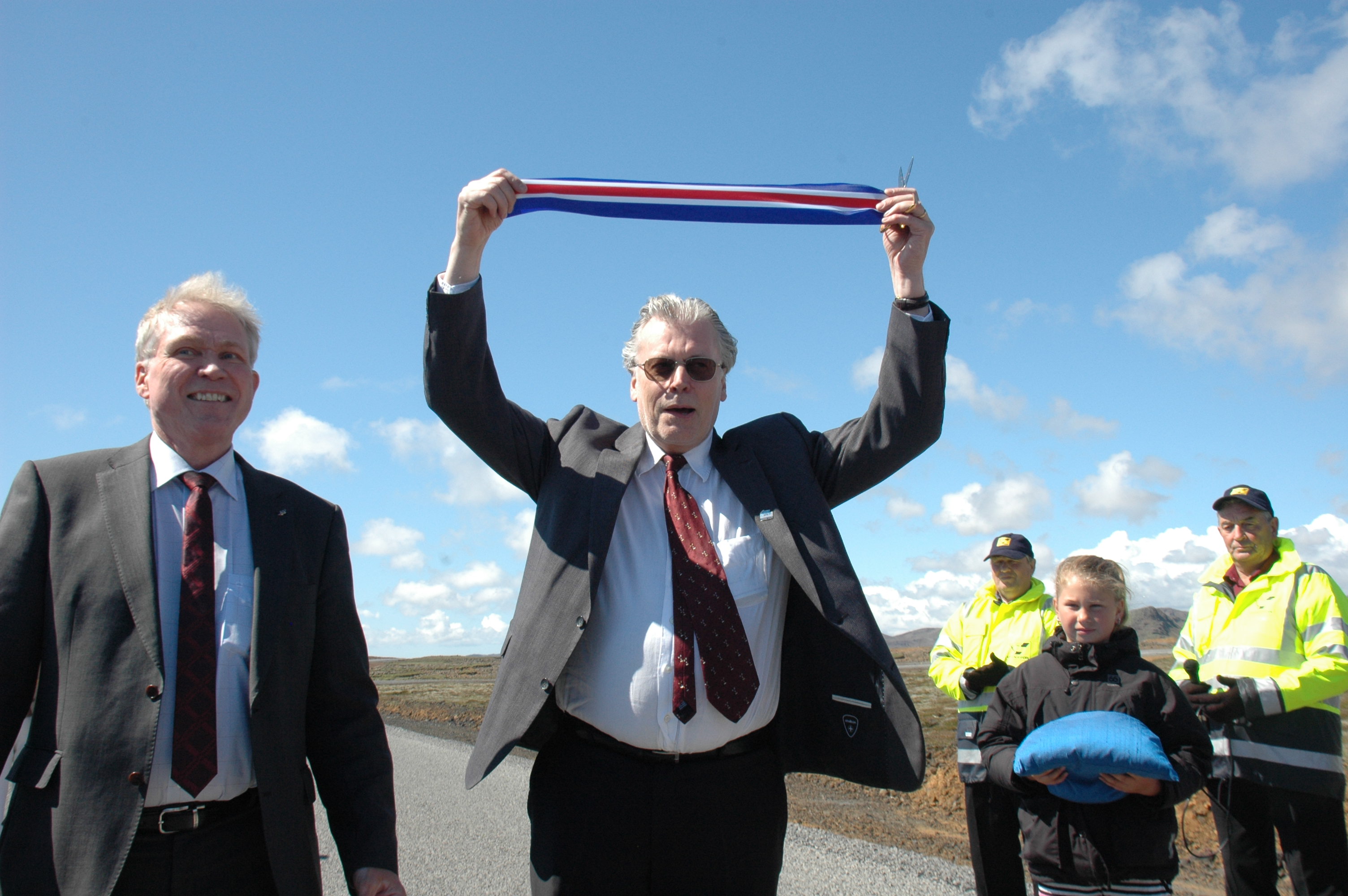 Suðurstrandarvegur var vígður formlega í dag en Ögmundur Jónasson, innanríkisráðherra, og Hreinn Haraldsson, vegamálastjóri klipptu á borða við vígsluna.