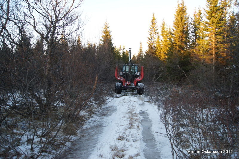 Síðustu daga hefur timbrið verið flutt úr Skarfanesi við nokkuð erfiðar aðstæður, en skaflar og ís er á veginum úr Skarfanesi að Landvegi. Mest af timbrinu verður selt til Elkem en sverustu bolirnir, auk spíruefnis fyrir fiskihjalla var flokkað frá og verður selt sérstaklega.