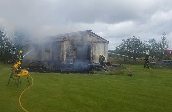 Slökkvistarf gekk vel en skúrinn og innbúið varð fyrir miklum skemmdum.