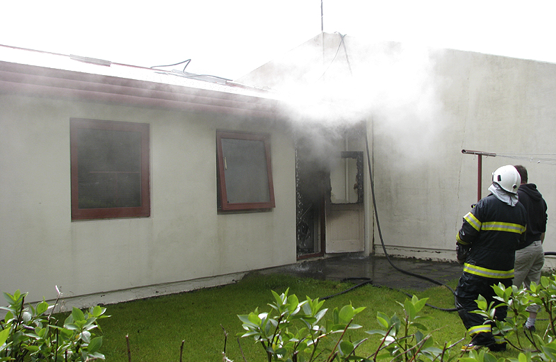 Slökkvilið Brunavarna Árnessýslu fékk boð um eldinn frá Neyðarlínunni kl. 15:27 í dag og logaði þá eldur í þvottahúsi auk þess sem mikill reykur var í húsinu. Slökkvistarf gekk vel fyrir sig en talið er að upptök eldsins hafi verið í þvottavél.