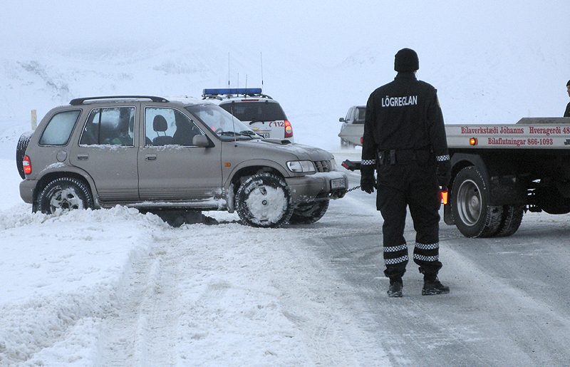 Fyrri veltan varð í morgun en sú seinni um klukkan tvö í dag. Þær voru á svipuðum stað í brekkunni og mikil hálka og snjór er á vettvangi.