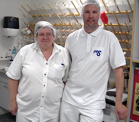 Þegar Ulla hóf störf í búinu byrjaði hún í Camembert ostinum og jógúrtinu en starfaði þó nærri öll árin á rannsóknarstofu búsins.