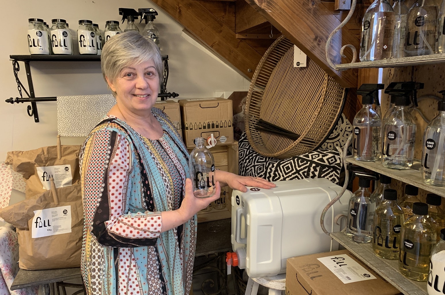 „Við höfum eingöngu verið að selja áfyllingar í viðeigandi umbúðir frá Fill. Okkur finnst mikilvægt að öll hreinsiefni séu rétt merkt. Einu sinni þótti ekkert tiltökumál að geyma t.d. terpentínu í gamalli kókflösku með tilheyrandi slysahættu en það er sem betur fer liðin tíð að ég held. Með því að fylla einungis á upprunalegar umbúðir veitir það meira öryggi um hvaða efni þú ert með í höndunum og rétt viðbrögð ef svo vill til að þau komist í litlar hendur eða munna. Allur er varinn góður þótt engin skaðleg innihaldsefni séu í Fill vörunum,“ segir Dagrún en á áfyllingarstöðinni eru hægt að fá öll helstu hreinsiefni fyrir heimilið.