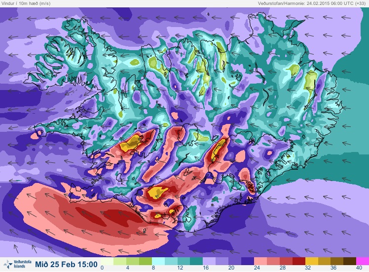 UPPFÆRT KL. 16:18: Um og upp úr miðri nóttu hvessir með skafrenningi á fjallvegum suðvestanlands. Að auki hríðarveður og blint undir morgun og enn vaxandi vindur. Á áttunda tímanum í fyrramálið er spáð hviðum, 30-35 m/s undir Eyjafjöllum.