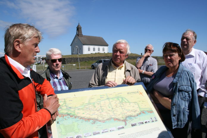 Um fimmtíu manns fóru í skoðunarferð um Suðurstrandarveg til Grindavíkur í gær en ferðin var farin í tilefni af vígslu vegarins í vikunni.