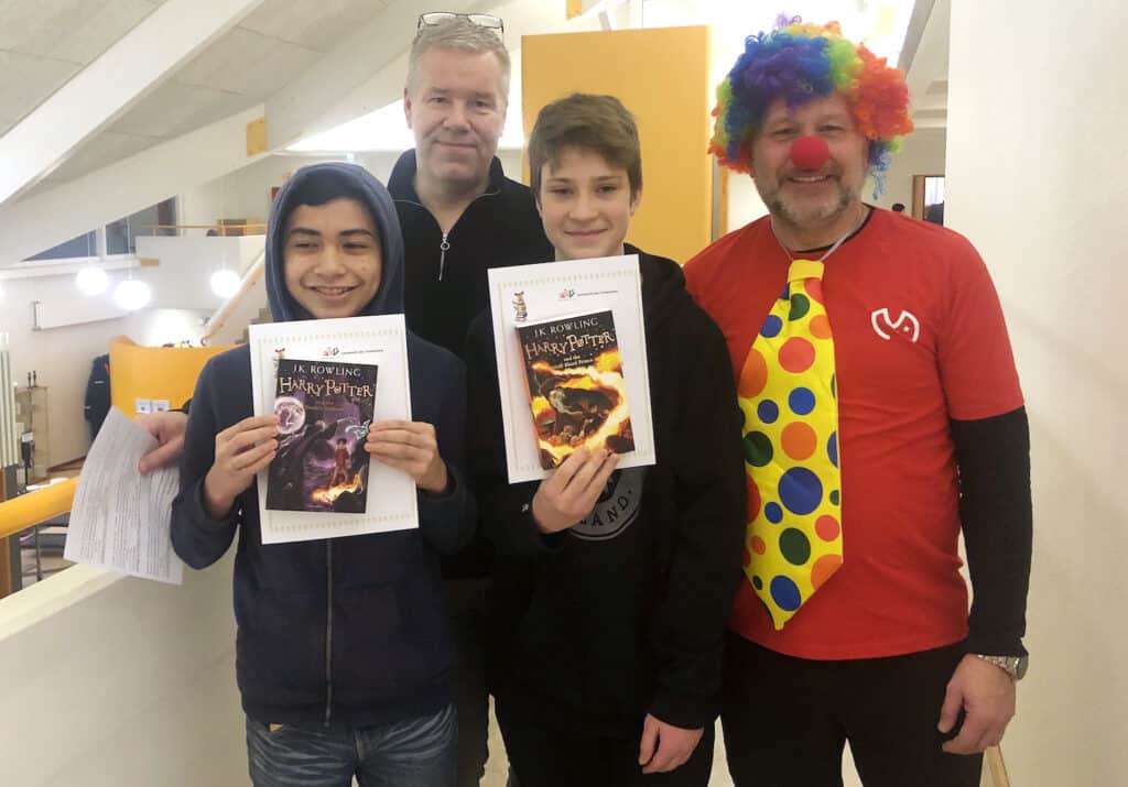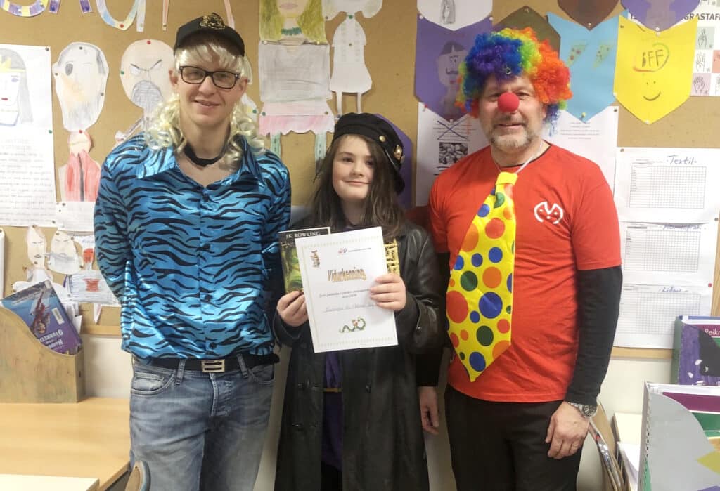 Í flokknum 6. – 7. bekkur fengu eftirtaldir nemendur bækur í bókaflokknum um Harry Potter eftir J. K. Rowling: Hrafnhildur Sif Gunnarsdóttir, Kveldúlfur Ari Ottóson Borg og Viktor Helgi Eyþórsson.