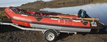 Zodiac slöngubát og kerru var stolið frá sumarbústað í Kiðjabergslandi í Grímsnesi um miðjan febrúar.