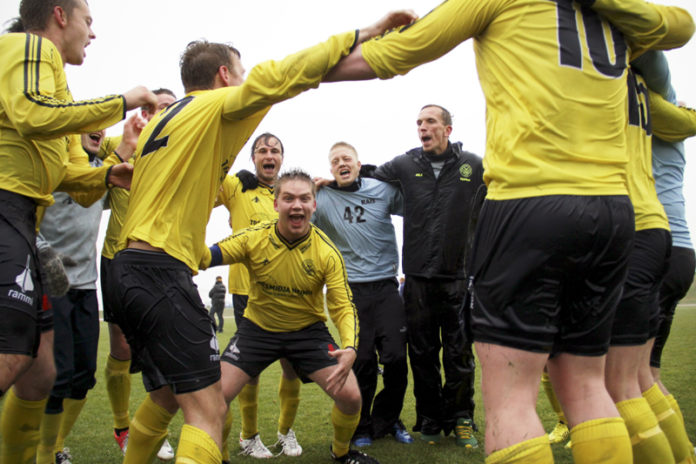 Ægismenn fögnuðu vel í leikslok en flýttu sér síðan í heita sturtu. Þrettán ár eru síðan Ægismenn spiluðu síðast í 2. deildinni og hefur biðin því verið löng hjá stuðningsmönnum félagsins.
