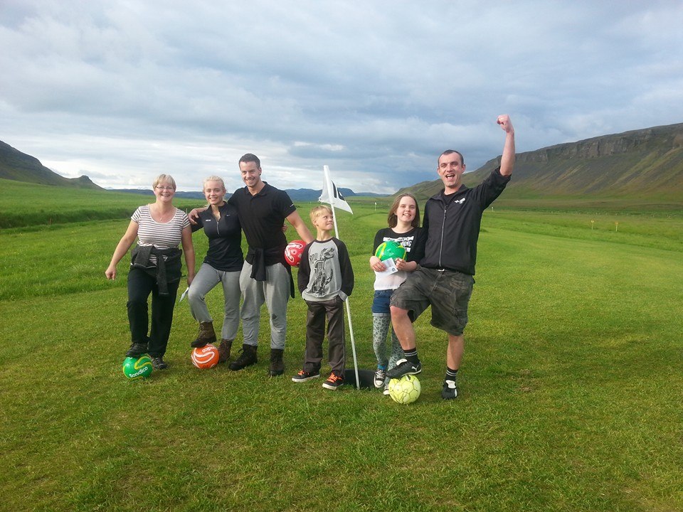 Berglind Magnúsdóttir er starfsmaður á fótboltagolfvellinum. Hún segir að áður hafi verið stundaður kúabúskapur á bænum og túnin nýtt til grasræktar. „Svo var ekki verið að nota túnið og mér fannst vanta einhverja afþreyingu fyrir alla. Ég heyrði fyrst af fótboltagolfi fyrir 7-8 árum þannig við ákváðum að kýla bara á þetta.“