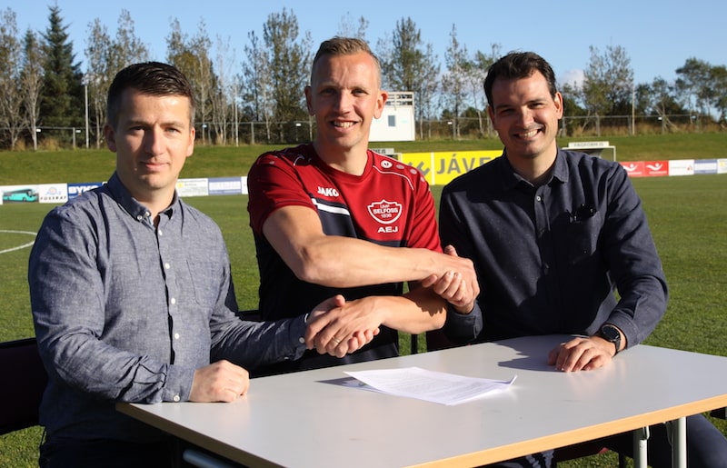 Undirskriftin fór fram á iðagrænum JÁVERK-vellinum eftir 1:0 sigur Selfoss á ÍBV í lokaumferð Pepsideildarinnar.