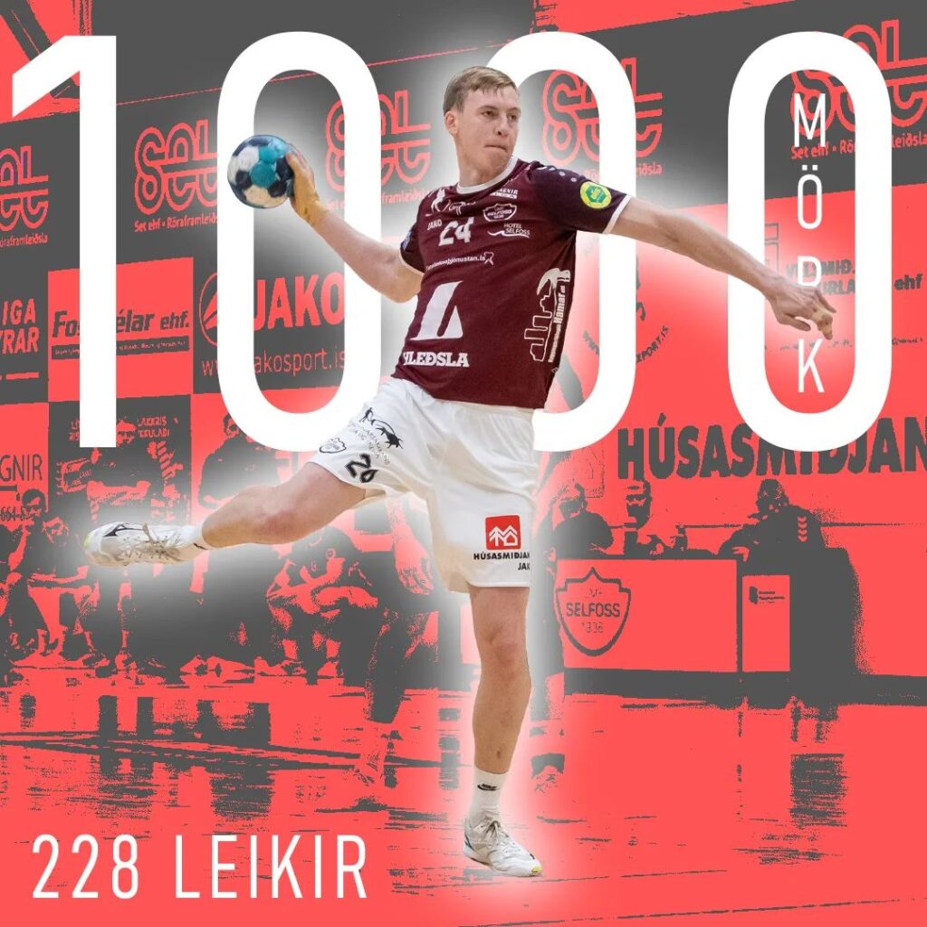 Á 25. mínútu kom Einar Sverrisson Selfyssingum í 10-9 með sínu þúsundasta marki fyrir Selfoss og hlaut hann standandi lófaklapp frá stúkunni og starfsmenn deildarinnar höfðu útbúið sérstaka mynd af Einari sem birtist á stigatöflunni þegar hann skoraði markið merkilega.