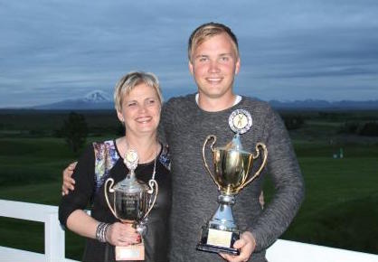 Mæðginin Andri Már Óskarsson og Katrín Björg Aðalbjörnsdóttir urðu klúbbmeistarar á meistaramóti Golfklúbbs Hellu sem lauk síðastliðinn laugardag.