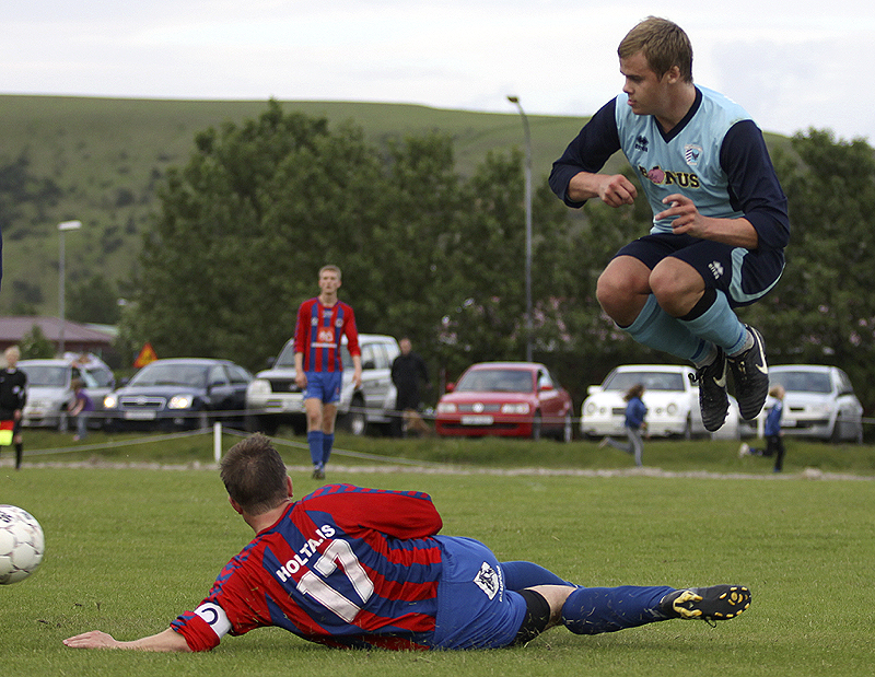 Leikurinn fór fjörlega af stað og Rangæingar fengu vítaspyrnu um miðjan fyrri hálfleik þegar Örvar Hlíðdal braut á Brynjólfi Þorsteinssyni innan teigs. Boban Jovic fór á punktinn en Steinar Örn Stefánsson, markvörður Árborgar, gerði sér lítið fyrir og varði spyrnuna.