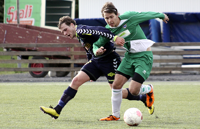 Bæði lið fengu hálffæri eftir þetta en Einar Árnason braut ísinn fyrir Njarðvík á 24. mínútu með skoti af stuttu færi eftir aukaspyrnu og klafs í teignum. Njarðvíkingar sóttu í sig veðrið eftir markið og komust í 0-2 á 35. mínútu með öðru marki frá Einari, nú eftir hornspyrnu. Njarðvíkingar voru nálægt því að bæta við þriðja markinu fyrir hlé þegar Ólafur Jónsson átti hörkuskalla í þverslána á lokamínútu fyrri hálfleiks.