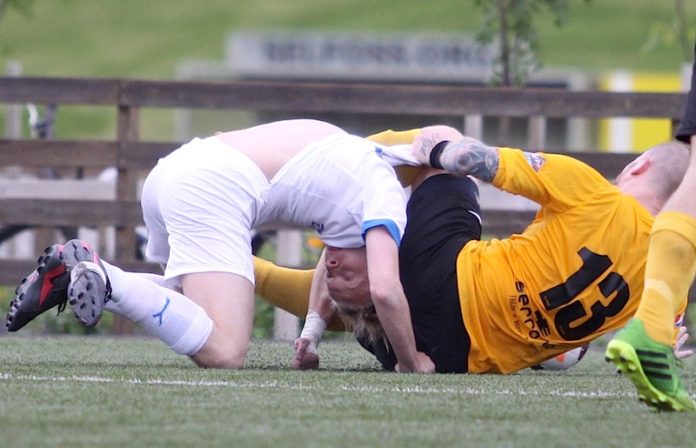 Staðan var 0-1 í hálfleik en síðari hálfleikurinn var jafnari og þegar leið á hann þyngdust sóknir Árborgar. Pelle Damby Carøe jafnaði metin fyrir Árborg á 75. mínútu og þar við sat þrátt fyrir að bæði lið hefðu átt mjög álitlegar sóknir á síðasta korterinu.