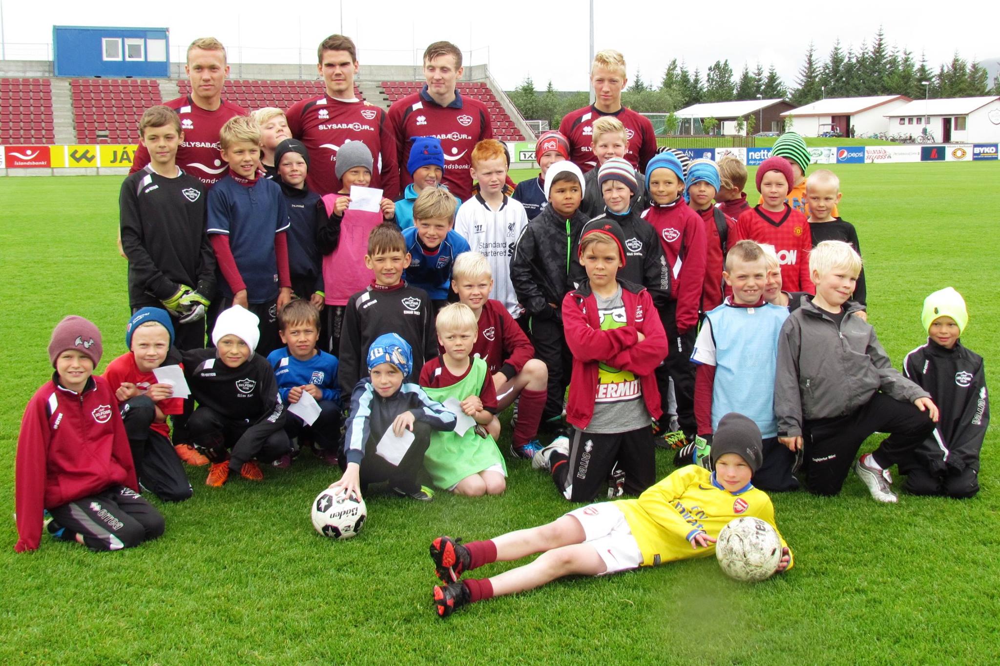 Þeir heilsuðu upp á krakkana, gáfu eiginhandaráritanir og góð ráð um það hvernig ná skuli árangri á knattspyrnuvellinum. Krakkarnir voru heldur betur ánægðir með heimsóknina og að fá að sjá þessar frábæru fyrirmyndir.
