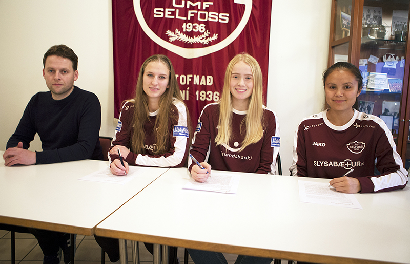 Þrír leikmenn kvennaliðs Selfoss í knattspyrnu skrifuðu í dag undir samninga við félagið. Allar sömdu þær til tveggja ára.