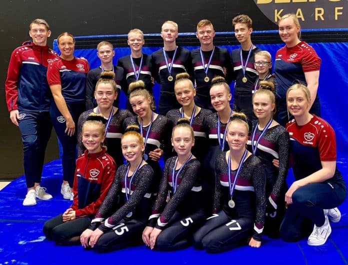 Blandað lið Selfoss sigraði í 1. flokki á GK mótinu í hópfimleikum sem haldið var í íþróttahúsi Vallaskóla á Selfoss síðastliðinn laugardag.