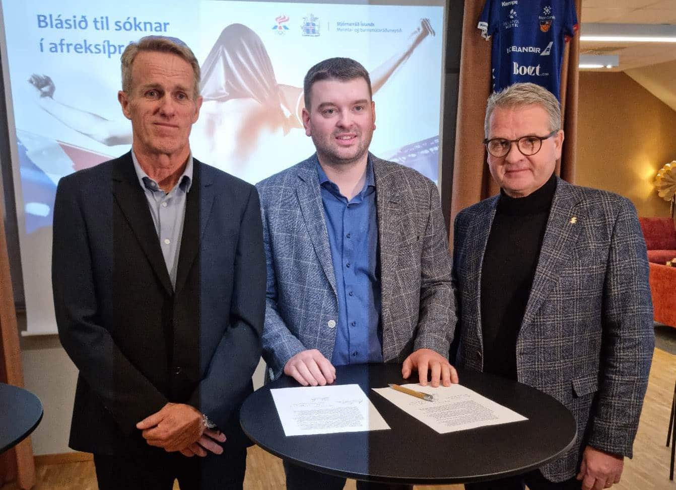 Mennta- og barnamálaráðuneytið og Íþrótta- og Ólympíusamband Íslands skrifuðu í dag undir samstarfssamning um stefnumörkun og uppbyggingu afreksíþróttastarfs á Íslandi. Samkomulagið felur m.a. í sér að Vésteinn Hafsteinsson muni flytja til Íslands og starfa með íslenskum stjórnvöldum að mótun aðgerða til að bæta stöðu og réttindi afreksíþróttafólks.